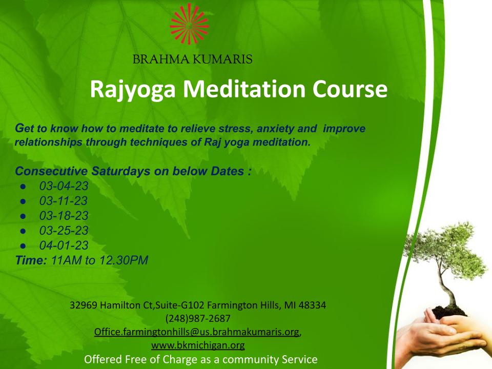 All courses and programs, including the teachings of Raja Yoga, are provided FREE of charge as a community service, supported by voluntary contributions